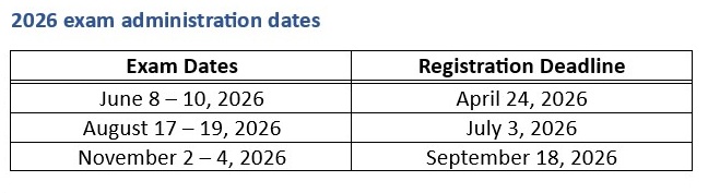 The pass mark is 65%. The examination results are reported as “pass” or “fail” with a Mastery Report provided only to candidates who have failed, indicating the candidate’s specific performance in each category. You are not penalized for wrong answers. The grade is final.
